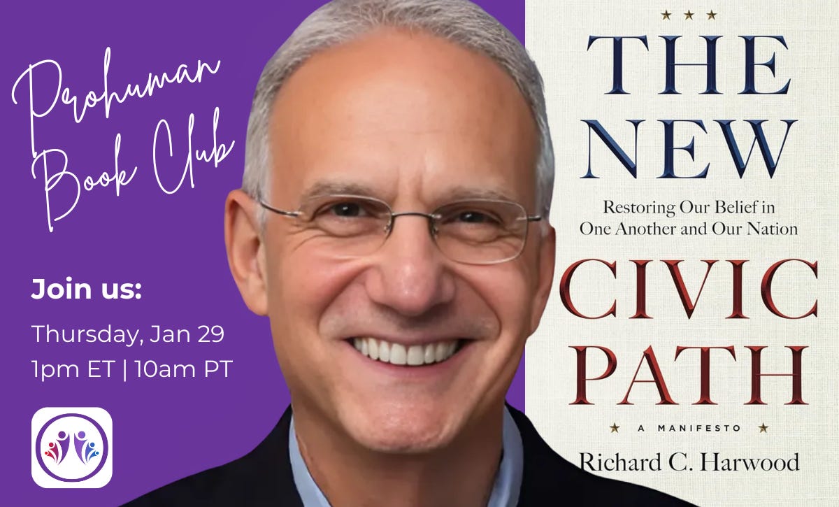 Rich Harwood joins us on Thursday, January 25 to discuss his book, The New Civic Path: Restoring Our Belief in One Another and Our Nation, where he advocates building community networks and civic groups to restore shared purpose.